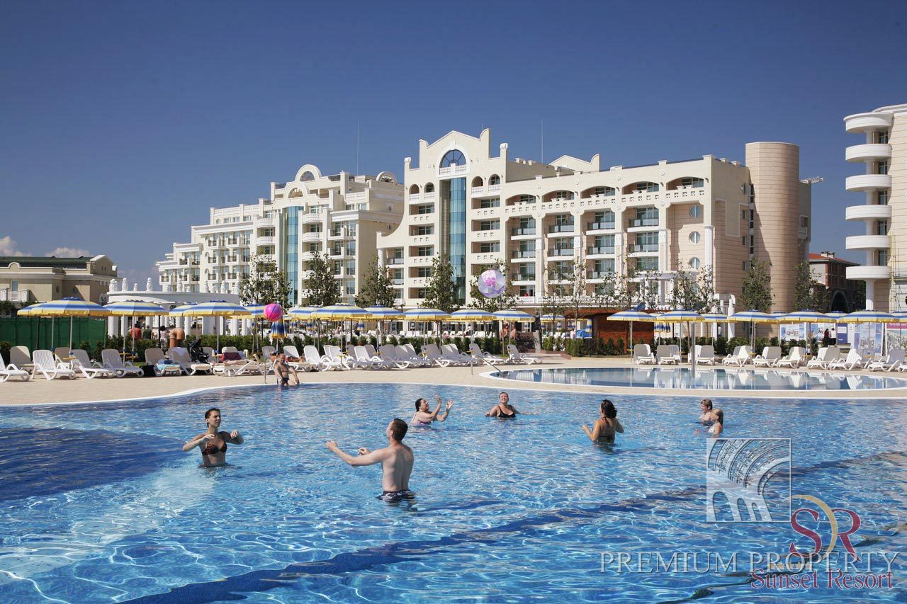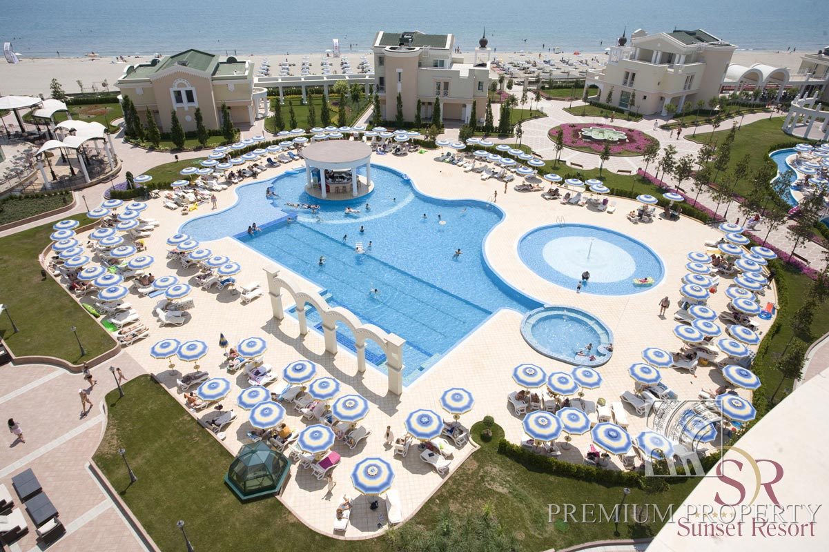 Апарт - отель Сансет Резорт (Sunset Resort) расположен на самом морском берегу пляжной полосы с мягким и мелким песком. Комплекс находится в непосредственной близости центральной дороги Варна – Бургас, но на достаточном расстоянии, чтобы обеспечить спокойную атмосферу гостям.