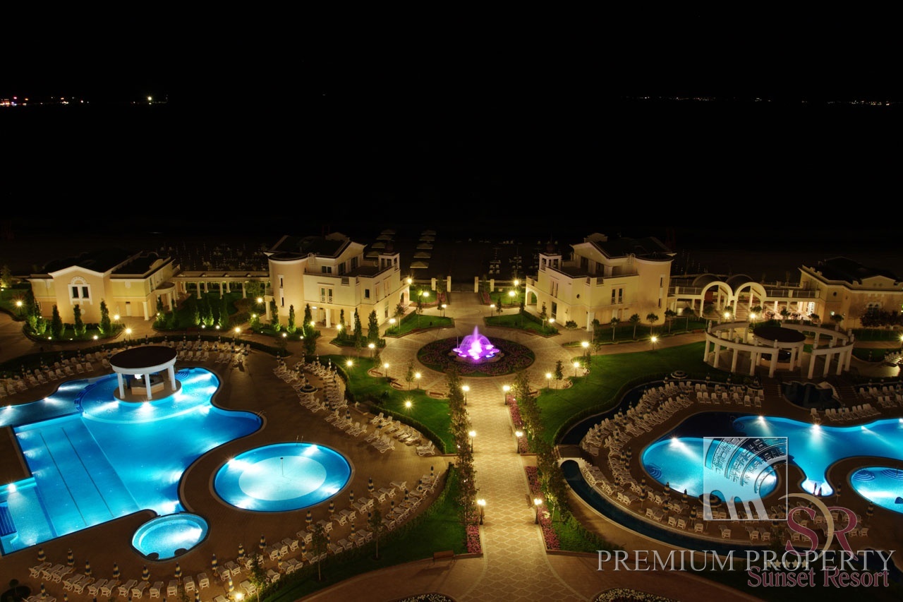Сансет Резорт состоит из 5 апарт-отелей и 6 изысканных бульварных вилл, с общей застроенной площадью в 115 000 кв. м. Четыре внешних бассейна, два пул - бара, водные аттракционы, расположении на более чем 3 500 кв. м, внутренний бассейн, искусственная река, которая извивается среди зеленых площадей с экзотическими деревьями и клумбами, детские водяные горки, кафе и коктейль - бары, рестораны, СПА и Уеллнесс - центр, мультифункциональный зал, спортивные сооружения, боулинг, магазины, детский клуб, салон красоты, подземный гараж и внешняя автостоянка, все это превращает его в изысканный европейский курорт с необходимыми удобствами для одного первоклассного отдыха.