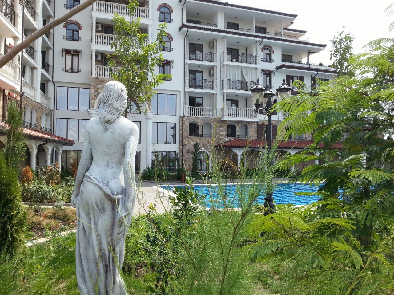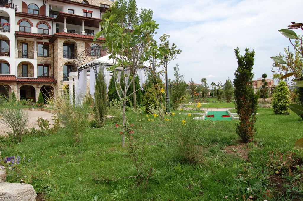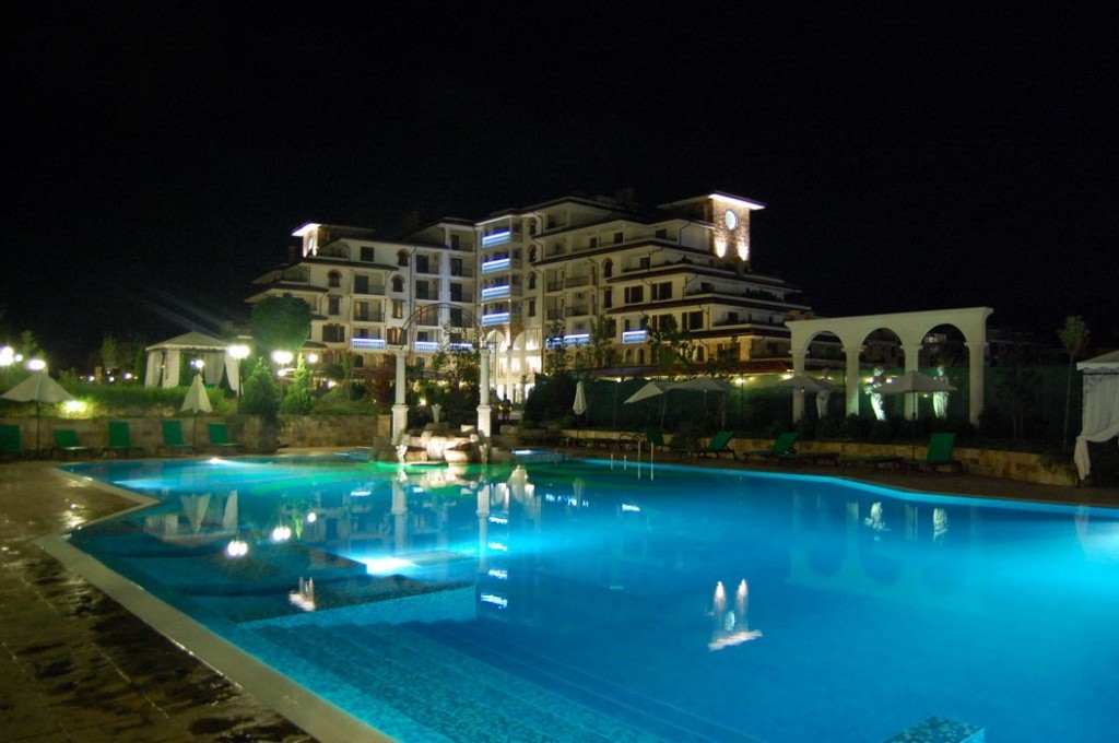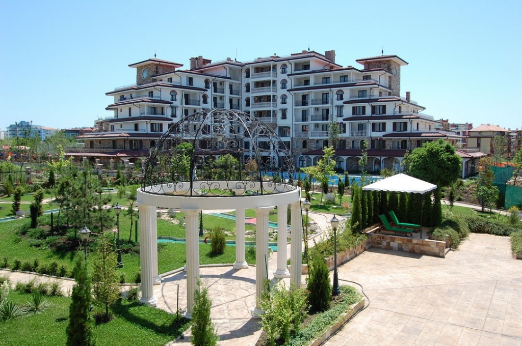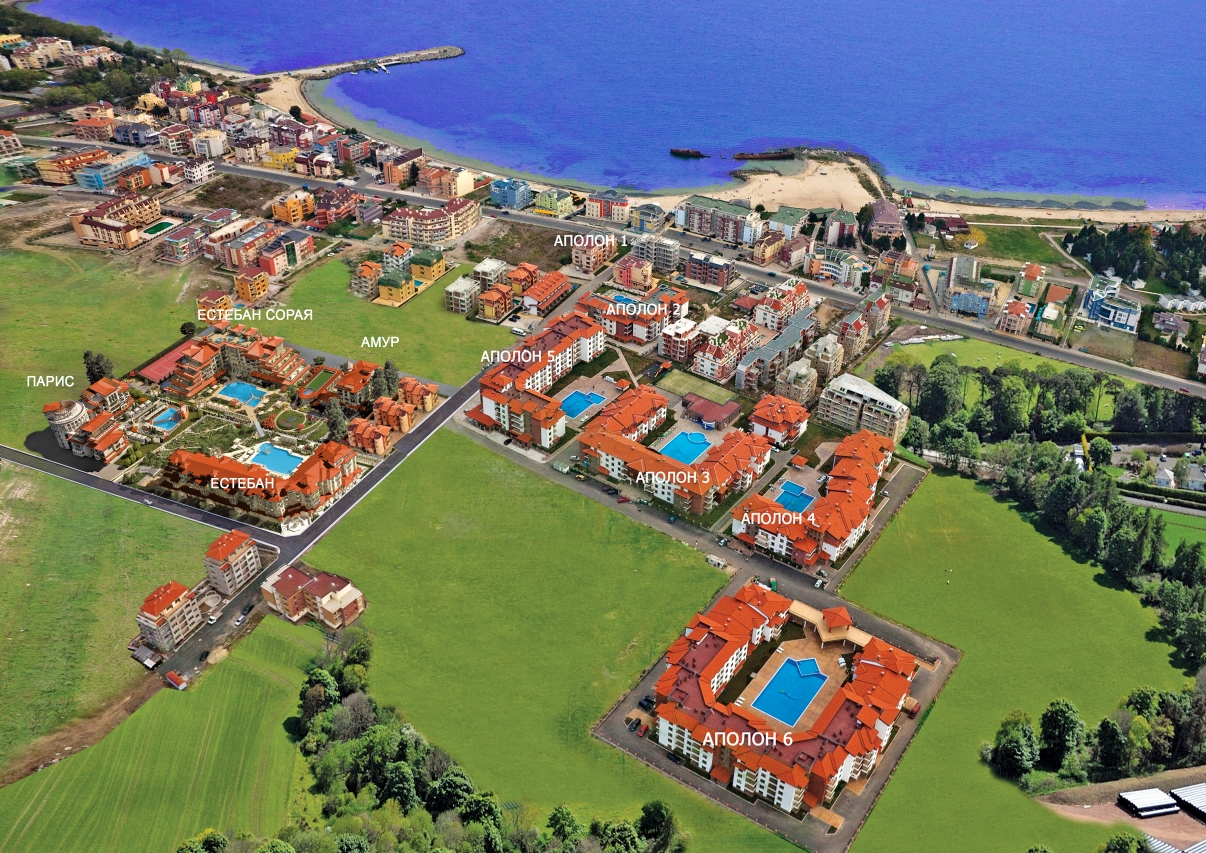 Для тех, кто предпочитает не шумный отдых, в составе комплекса предусмотрен бассейн с соленой водой для взрослых и детей. Территория комплекса удачно интегрируется в общее пространство для отдыха с соседними комплексами Эстебана. Это позволяет при необходимости пользоваться услугами этих комплексов, а именно: бассейнами с пресной водой с подогревом, теннисным кортом, мини гольфом, лобби баром, медицинском SPA центром, фитнесом, русским бильярдом, детской площадкой. Приятное впечатление оставят прогулки по аллеям комплексов. Кроме того к услугам отдыхающих – гаражи, подземный паркинг, ресторан, зона барбекю, парикмахерская, детский развлекательный центр с аниматорами. В комплексе предусмотрена круглосуточная охрана. Всего в 400 метрах от комплекса находится самый большой в Болгарии аквапарк. Стильный дизайн, безупречное качество строительства и высокий уровень обслуживания комплекса сделают ваш отдых незабываемым. При этом цены на аппартаменты Вас приятно удивят. Мы строим не дома. Мы строим вашу мечту! Не верите? Спросите у тех, кто живет уже тут. В идею создания комплекса были положены мифы древней Греции.