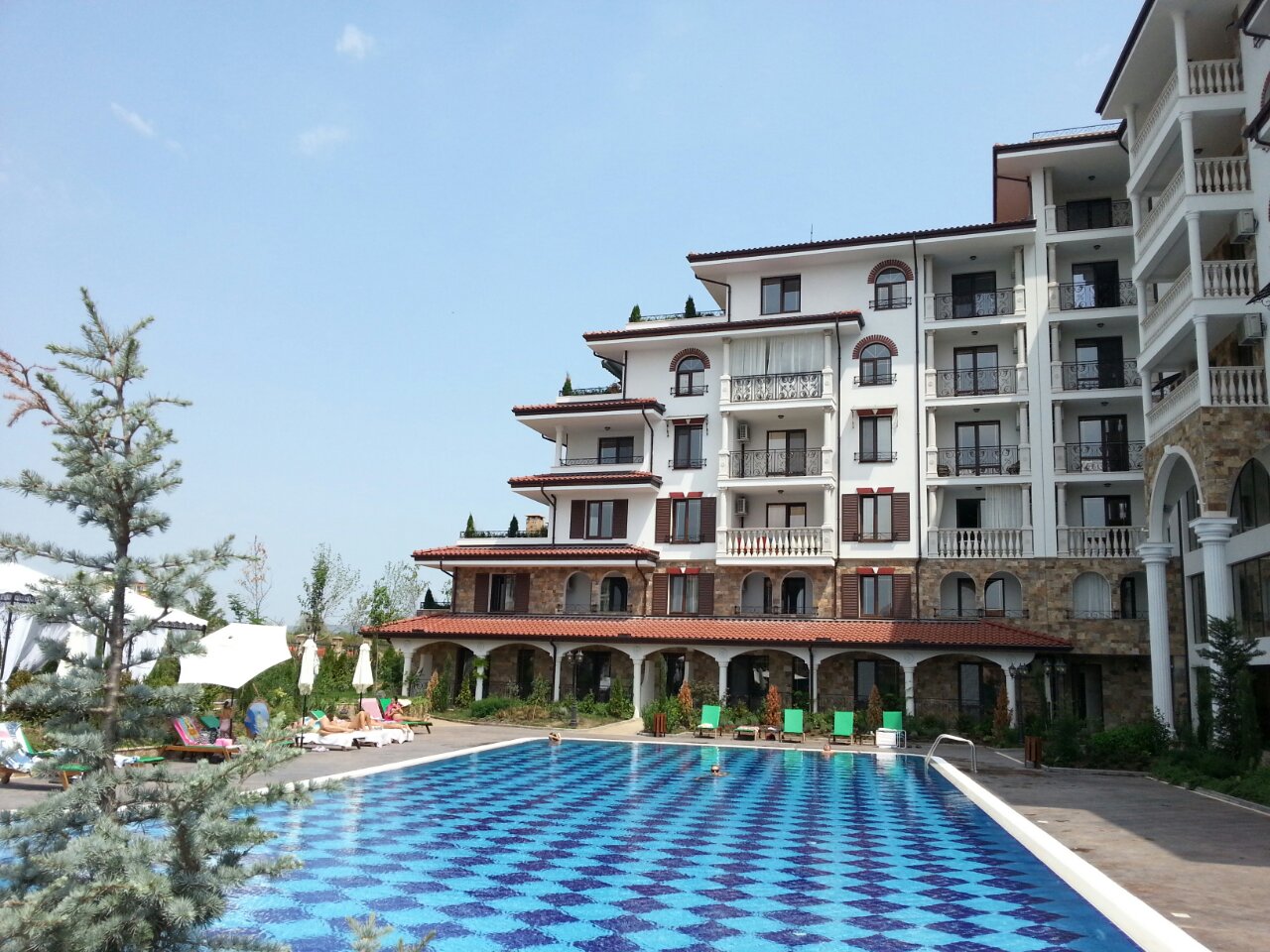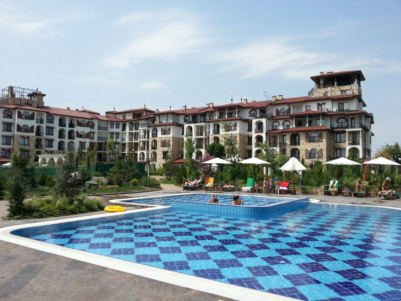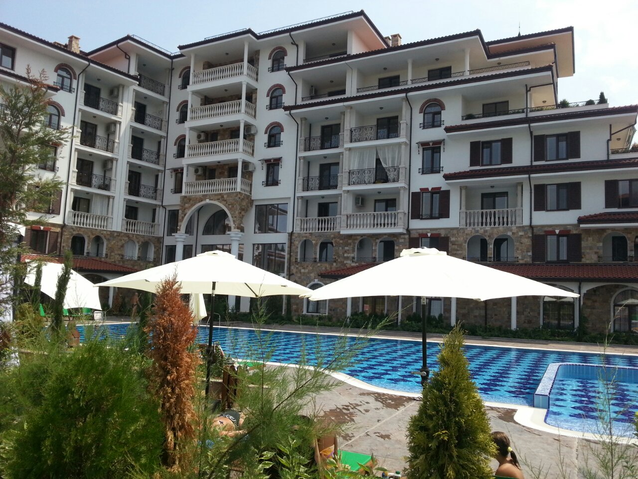 Для тех, кто предпочитает не шумный отдых, в составе комплекса предусмотрен бассейн с соленой водой для взрослых и детей. Территория комплекса удачно интегрируется в общее пространство для отдыха с соседними комплексами Эстебана. Это позволяет при необходимости пользоваться услугами этих комплексов, а именно: бассейнами с пресной водой с подогревом, теннисным кортом, мини гольфом, лобби баром, медицинском SPA центром, фитнесом, русским бильярдом, детской площадкой. Приятное впечатление оставят прогулки по аллеям комплексов. Кроме того к услугам отдыхающих – гаражи, подземный паркинг, ресторан, зона барбекю, парикмахерская, детский развлекательный центр с аниматорами. В комплексе предусмотрена круглосуточная охрана. Всего в 400 метрах от комплекса находится самый большой в Болгарии аквапарк. Стильный дизайн, безупречное качество строительства и высокий уровень обслуживания комплекса сделают ваш отдых незабываемым. При этом цены на аппартаменты Вас приятно удивят. Мы строим не дома. Мы строим вашу мечту! Не верите? Спросите у тех, кто живет уже тут. В идею создания комплекса были положены мифы древней Греции.