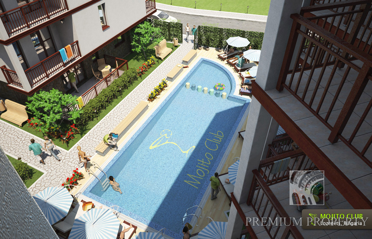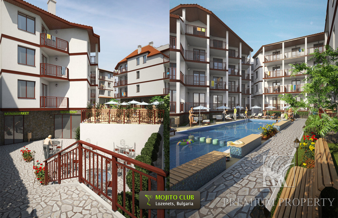 Комплекс Мохито Клуб (Mojito Club) находится в популярном у курорте Лозенец с развитой инфраструктурой, роскошными пляжами и чистейшим в регионе морем. Расположение на возвышенности в 70 метрах от самого большого пляжа курорта Лозенец, живописная береговая линия и продуманные планировочные решения обеспечивают восхитительные панорамные виды на море из большинства апартаментов.