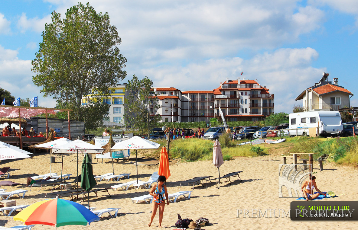 Комплекс апартаментов Мохито Клуб находится в часе езды от международного аэропорта Бургаса по свободному благоустроенному шоссе, проходящему через заповедник Ропотамо. Наличие двух пляжей вблизи комплекса позволяет разнообразить отдых на море. Центральный – большой и роскошный пляж в 70 м от комплекса, с мелким золотистым песком, пологим дном и развитым пляжным сервисом. Прямо на пляже расположены рыбный ресторан, школа серфинга, периодически проводятся разнообразные спортивные мероприятия. Второй, более уединенный пляж с ракушечником и мелководьем, расположен в 200 м от комплекса и прекрасно подходит для спокойного отдыха с маленькими детьми.