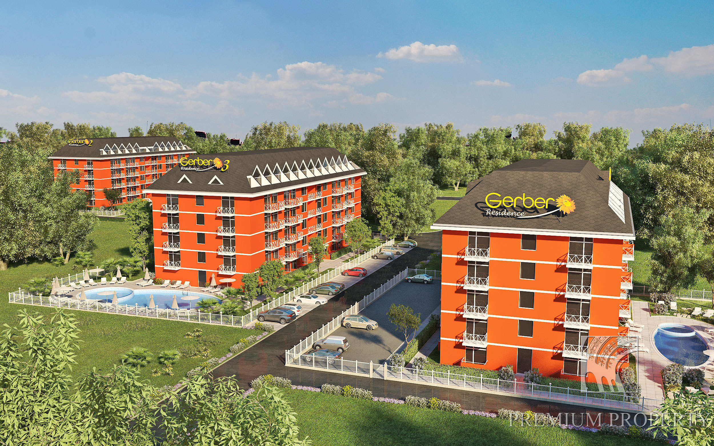Комплекс курортных апартаментов Гербер Резиденс 4 (Gerber Residence 4​) находится в зоне запад туристического комплекса Солнечный Берег. Здание проектировано для сезонного пользования, но есть возможность пользоваться им и круглый год. Жилая площадь в основном компактно обособлена в виде однокомнатных апартаментов тип студия как и в небольших двукомнатных апартаментов с одной спальней – по 4 апартаментов для каждого стандартного этажа здания.
